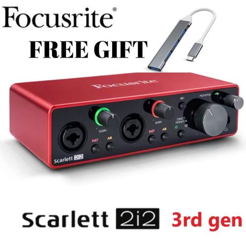 The most popular audio interface for artists across all genres, the third generation Scarlett 2i2 provides two mic/line/instrument inputs allowing simultaneous recording and playback of up to two channels with independently controllable headphone and monitor outputs.