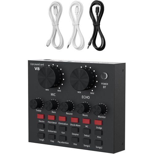 TodyJeyHo External Sound Card, USB V8 Live External Sound Mixer Board, Voice Changer Sound Card with Multiple Sound Effects for Live Recording Home KTV Voice Chat (V8)